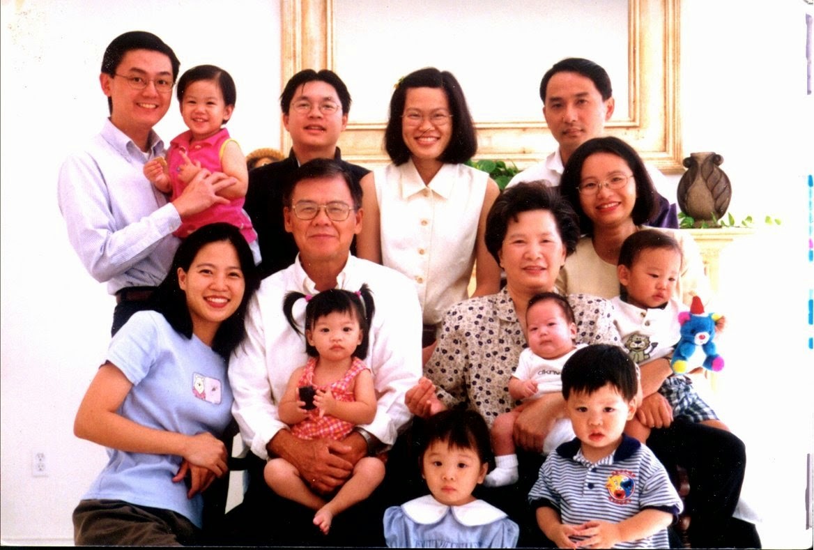各位同學好、我是陳國鐘自大學畢業後、與黃健二兄同進交通銀行服務十七年。于1978年8月移民美國、迄今24年矣!回首來時路,不勝依依!弟目前任職於美國聯邦政府郵政局工業市分局郵政處理中心。己工作18年,再過兩年就申請退休。附上全家照片一張,中間我們夫婦,右邊大女兒夫婦(兩位均是內科醫師,現自行開業診所),中間三女兒夫婦(兩位均是牙科醫師、自行開業診所),左邊二女兒夫婦(二女婿現職律師,自行開業律師事業所),小孫子六位,男女各半。照片使用完畢後,敬請寄回因為只有一張。
